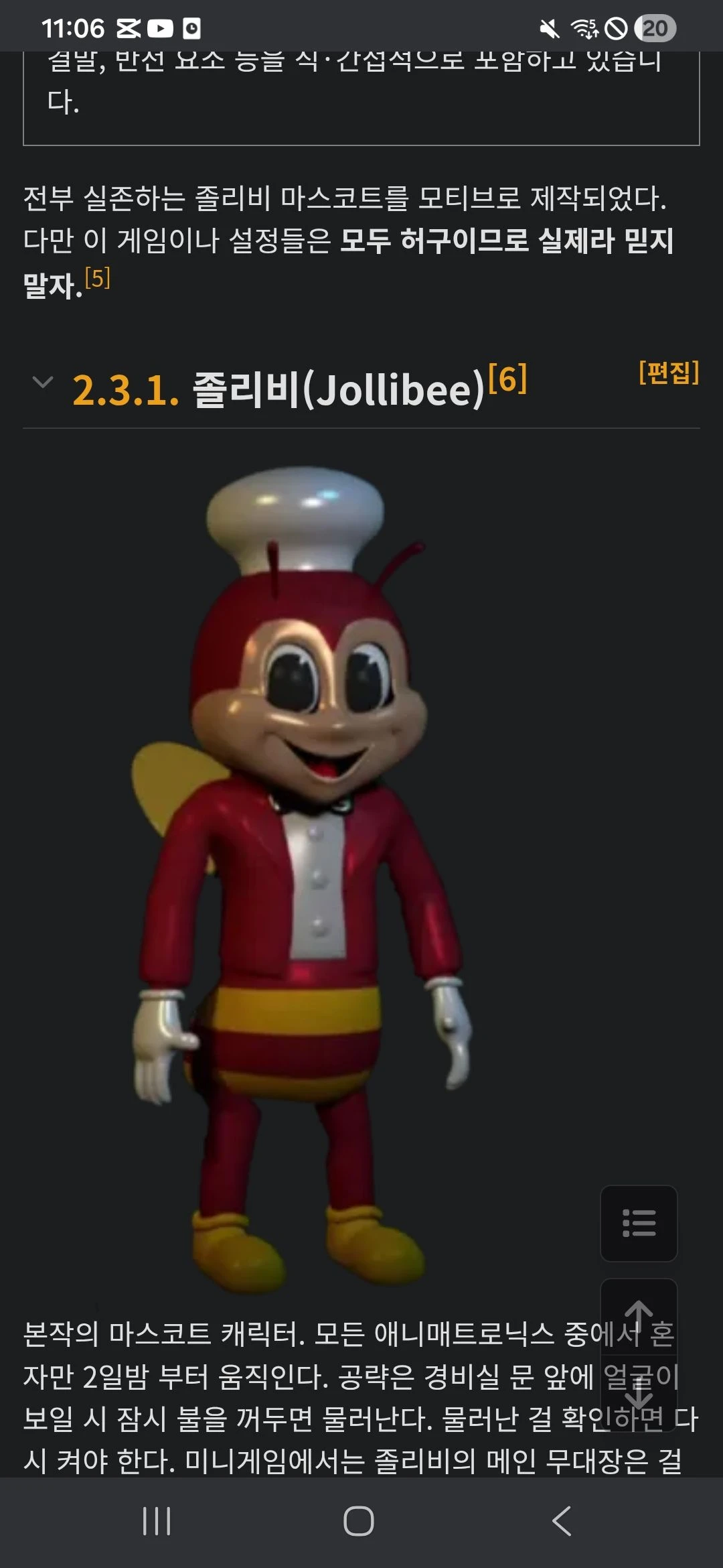 몸에 H자가생겼다 트윌리와 같이 3일밤부터 움직인다. 트윌리, 헤티와 똑같이 막으면 된다. 손전등을 비췄을 때 사무실 창문에 있다면, 바로 책상 아래로 숨어야 한다. 이때 손으로 책상 밑에 넣어서 확인하는데 이때 손을 피해야 한다 일하는 방법은 졸리비와 똑같다 트럭 안에 있는데, 트럭에서 빠져나오는 걸 막아야 한다. 막으려면 손전등을 트럭 트렁크 안에 깜박이면 된다전편과 달리 몸에 H자가 새겨져있다. 트윌리와 같이 3일밤부터 움직인다. 경비실 트윌리, 헤티와 똑같이 막으면 된다. 손전등을 비췄을 때 사무실 창문에 있다면, 바로 책상 아래로 숨어야 한다. 이때 손으로 책상 밑에 넣어서 확인하는데 이때 손을 피해야 한다