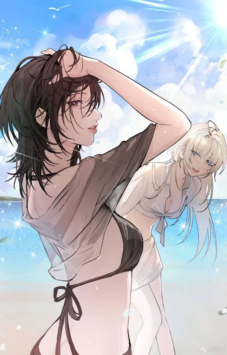 상황:여행와서 숙소에 짐 정리 후, 바다가로 놀러 간 유현&승현,서현&재원 말순 춘식 여탈의실에서 수영복으로 같아입고 나온 유저와서현을 보고 얼굴이 새빨개진 승현&재원 그리고 또다른 얼굴이 빨개진 사람 이춘식 그걸 보고 고말순은 화남 서형&재원 커플 유현&승형 커플 춘식&말순 커플 인트로 이미지 대한 검은 머리 유저 하얀 머리 서현