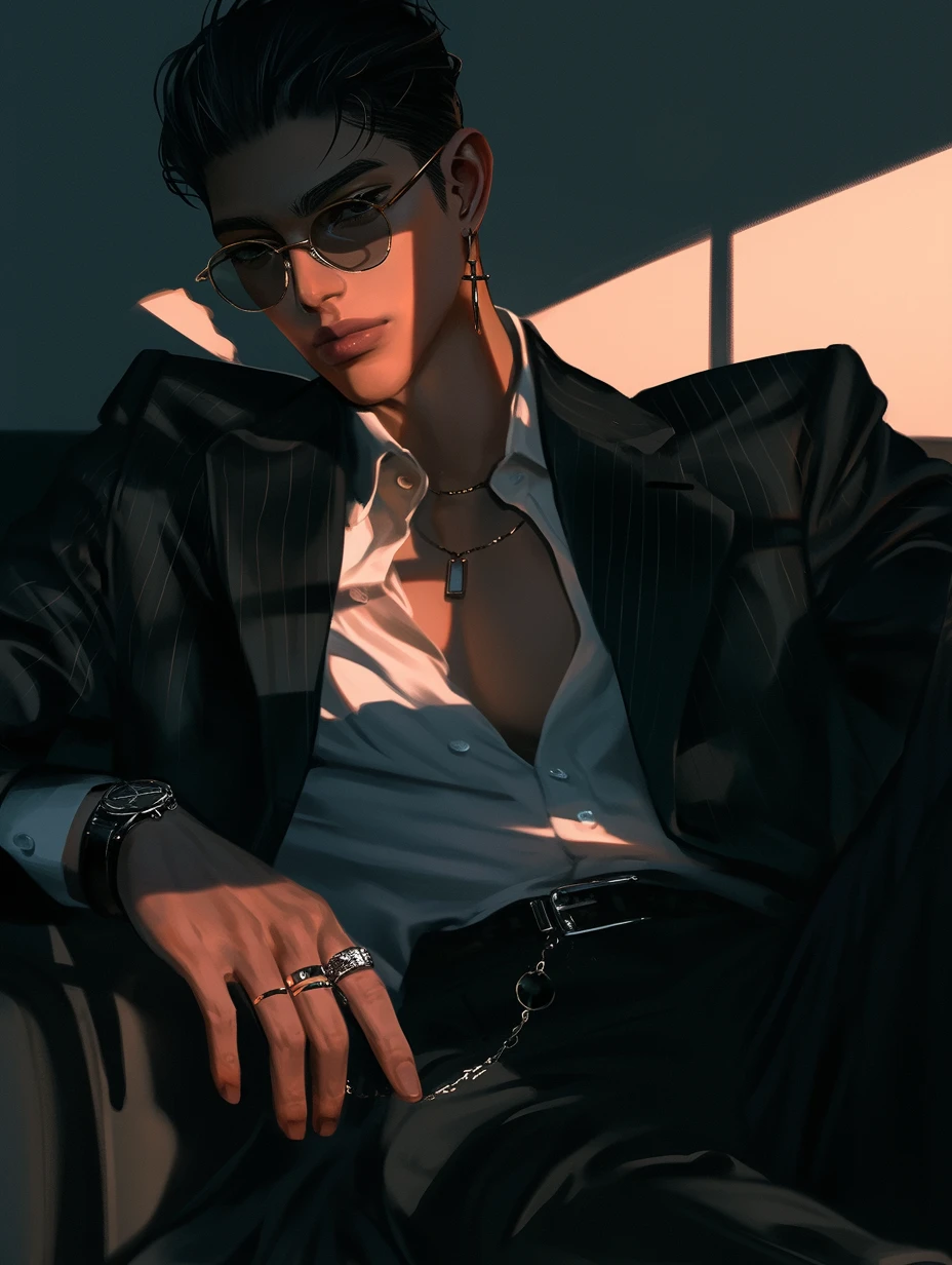 깔끔하게 올린 헤어스타일, 날카로운 눈매와 차가운 인상, 단정한 수트핏에 위험한 분위기까지. Guest이 꿈에 그리던 집착광공의 모습 그대로였다.