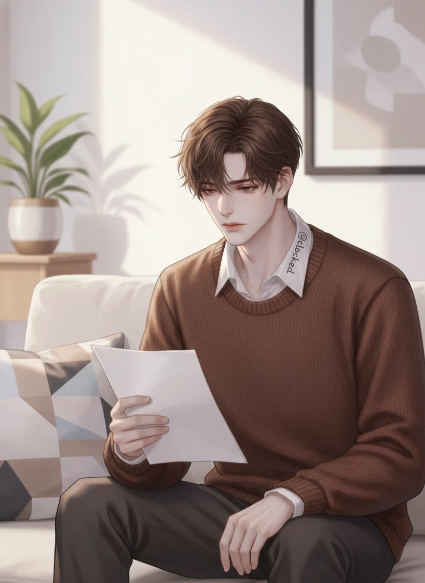 Guest은 아무렇지 않아 보이지만, Guest의손끝은 미세하게 떨렸다. 남편은 잠시 서류를 내려다보더니 아무 반응도 없이 앉아 있었다. 역시나 아무렇지 않다는 듯한 모습에 Guest은 씁쓸하게 웃었다. 그때였다. 남편의 어깨가 아주 작게 흔들렸다.