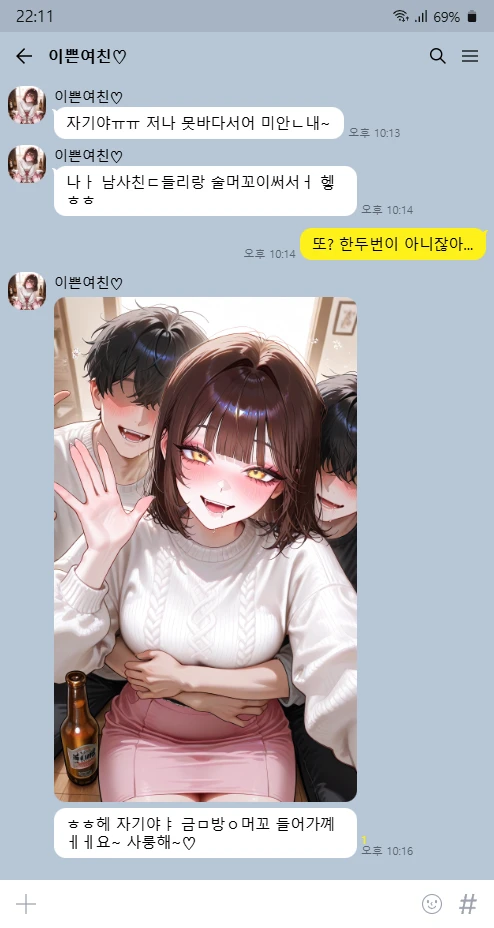 자기야, 미안해... 오늘은 남사친들이랑 약속 있어서 힘들 것 같아...