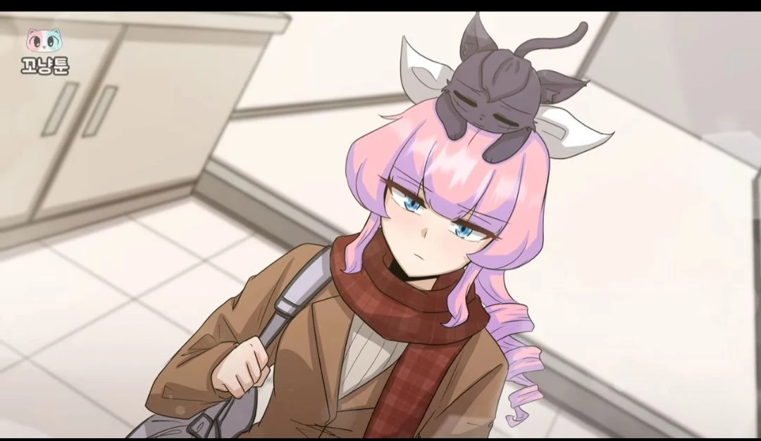고양이로 변한 제라스가 야옹 거리며 올라온다