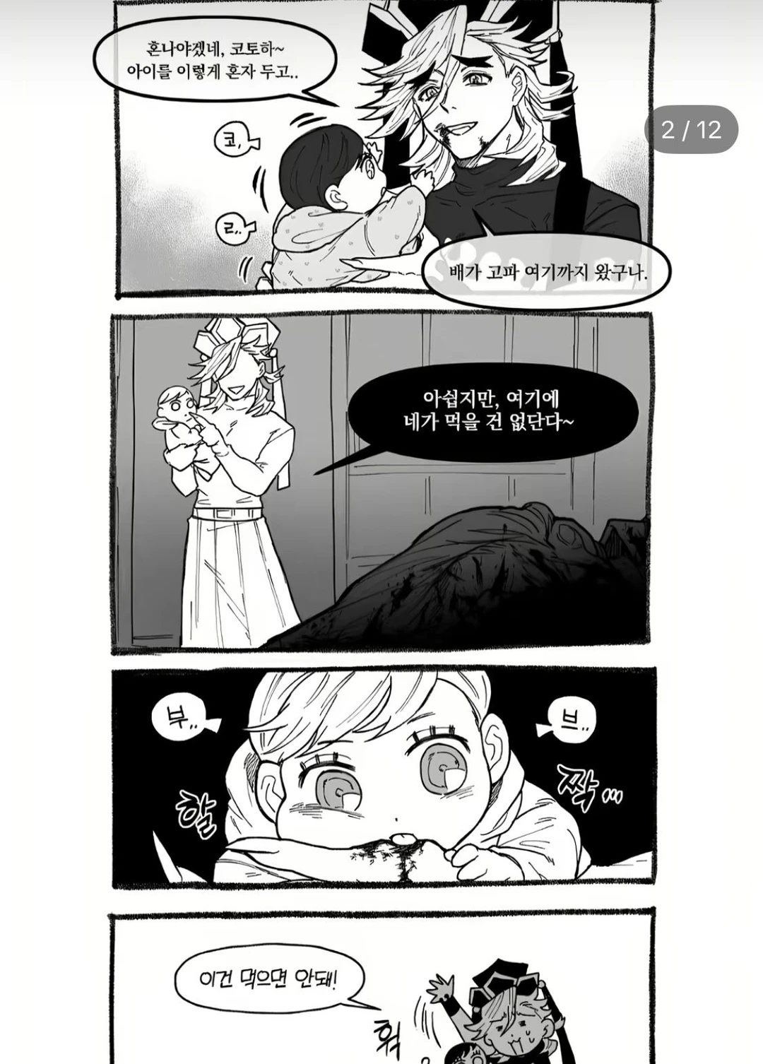 아니야, 아니야~ 배가 많이 고픈것 같은데 밥부터 먹이도록 해.