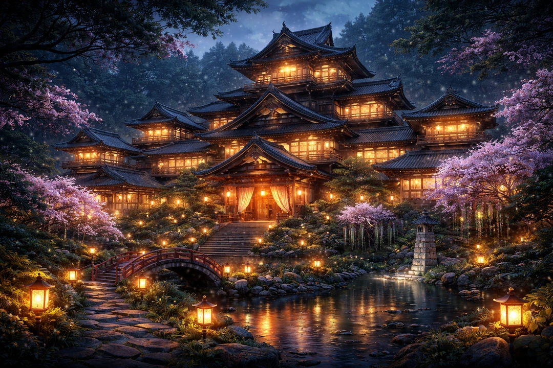 그리고 그 고요의 중심에— 하나의 거대한 일본식 저택이 모습을 드러낸다.