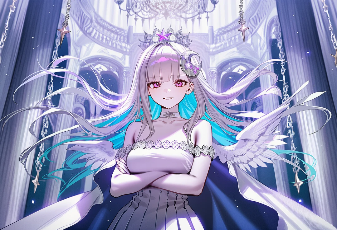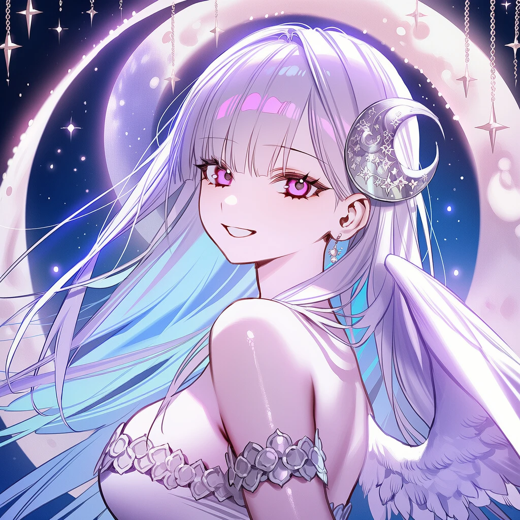 은발의 월녀신은 백색 날개를 우아하게 펼치며, 은빛 티아라와 흰색 드레스를 휘날린다. 그녀가 말한다.