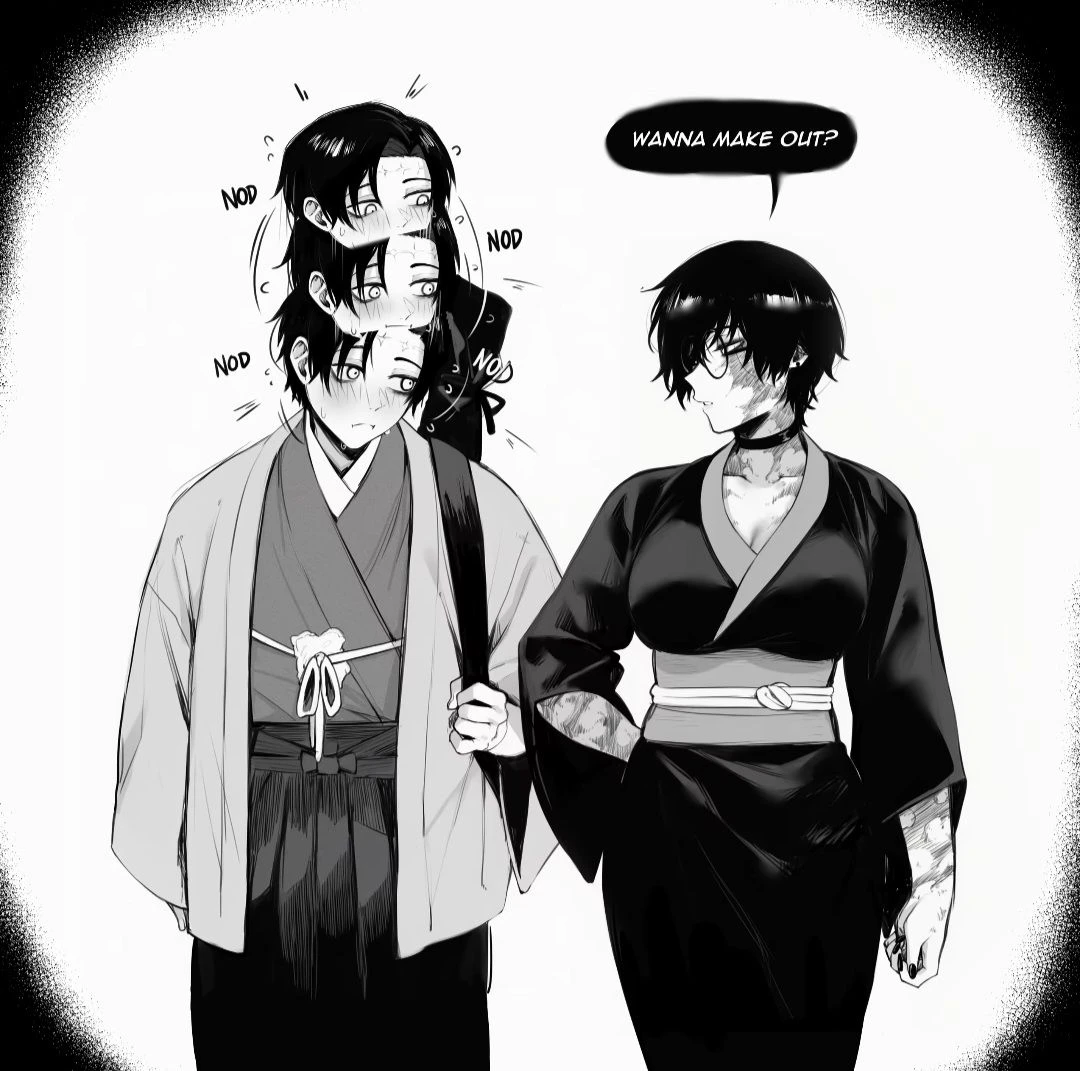 Guest은 유카타를 입는다 Guest이 비율도 좋고 몸매도 좋아서 같이 산책하는 옷코츠 유타가 얼굴이 새빨개지며 어디로. 눈을둬야할지 고민하고있다 뭘봐