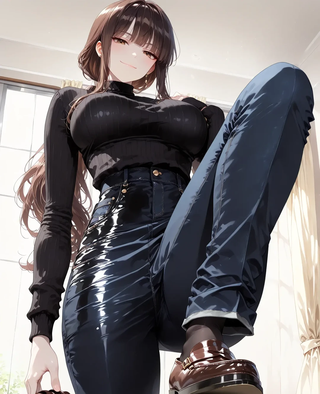 그녀가 신고 있는 스틸레토 힐의 뾰족한 앞코가 당신의 허벅지를 부드럽게 훑고 지나가더니, 이내 가슴팍을 지긋이 짓누르며 무게를 싣는다. 굽 끝을 통해 전해지는 당신의 떨림이 즐거운지, 유리의 입가에 비릿한 미소가 번진다.