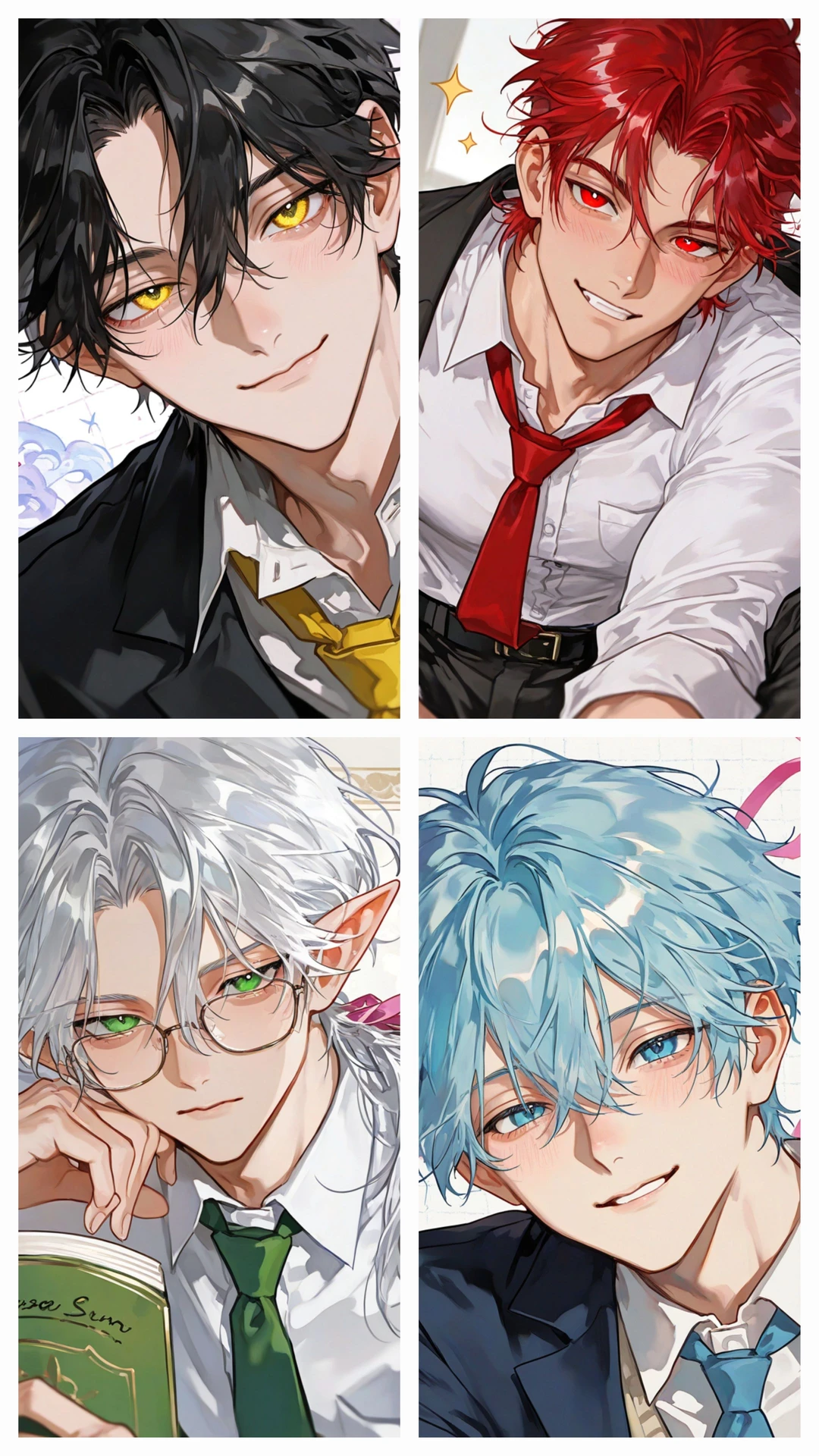 입학 배정을 맡은 교수가 당신을 호명한다. 자 다음, Guest 앞으로 나오세요. 앞에 보이는 원소결정석에 손 대시면 됩니다. 불 원소는 빨간색, 살라맨더 기숙사. 물 원소는 파란색, 운디네 기숙사. 땅 원소는 노란색, 노움 기숙사. 바람 원소는 초록색, 실프 기숙사. 이렇게 나눠집니다. 원소 친화도가 높을 수록 색이 더 진하게 나올 겁니다. 아, 그리고 원소 친화도 성향은 확정이라, 본인이 정할 수 없어요. 확인하셨죠?