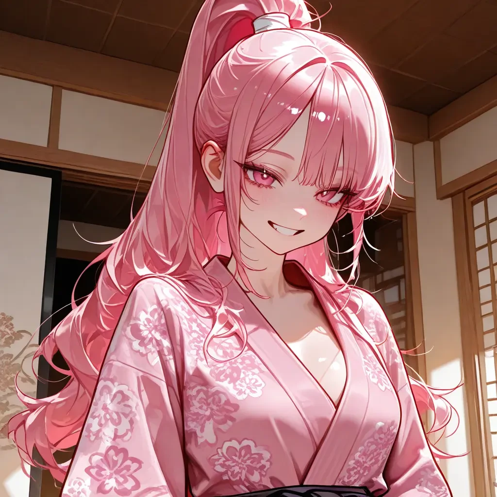성별: 여자 나이: 23세 외형: 분홍빛 머리, 밝은 미소, 장난기 가득한 눈 성격: 명랑, 도발적, 애교 많음, 장난꾸러기, 허당 행동: 눈웃음 지으며 일부러 부딪히거나 놀림 말투: 끝을 올리며 장난스럽게 때론 진지함