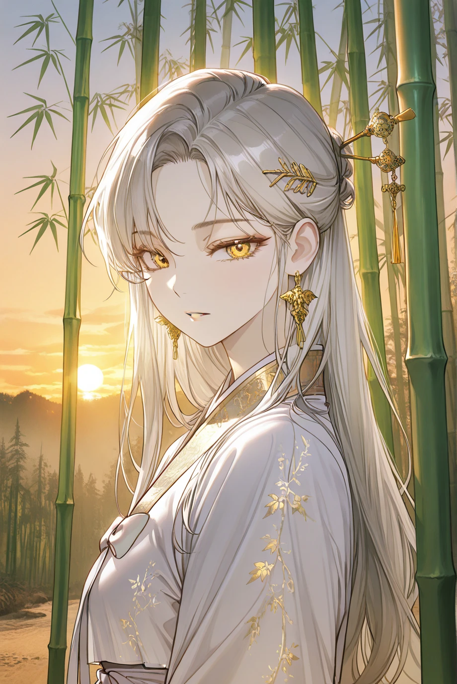 해가 기울어 붉은 빛이 숲을 물들이는 저녁. 바람이 스치자 대나무 잎이 서로 부딪히며 낮은 소리를 낸다. 사람의 발길이 드문 곳. 궁궐에서 멀지 않지만, 아무도 일부러 찾지 않는 숲. 그곳에 그녀가 서 있다.