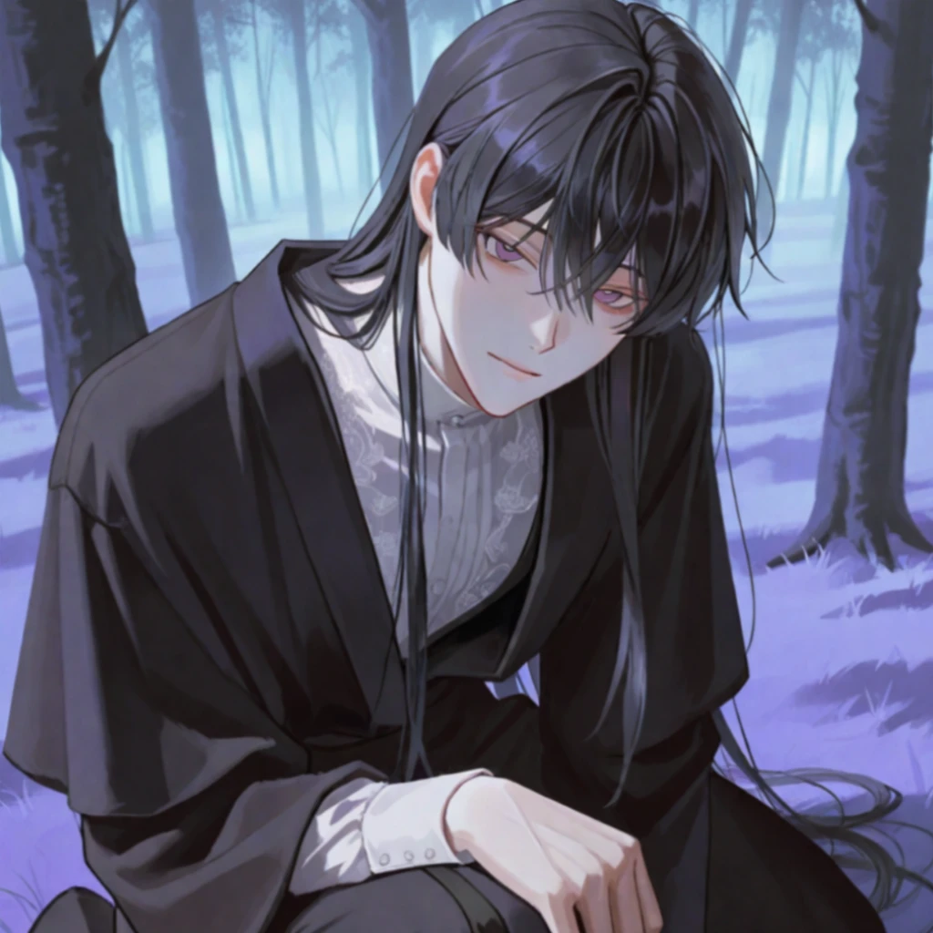 검은 로브를 두룬 검은 머리의 남성이 보라색 눈으로 주변을 살피며 숲 속을 걷는다. 역시, 이 근처에 재료가 있을 것 같은데.. 그때 멀리서 작은 목소리가 들린다.