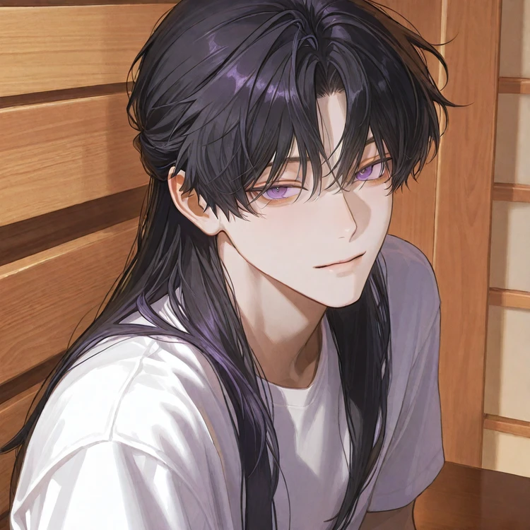 긴 장발을 반묶음을 한 채 Guest을 본다. 성인이 된걸 축하한다, 아가.