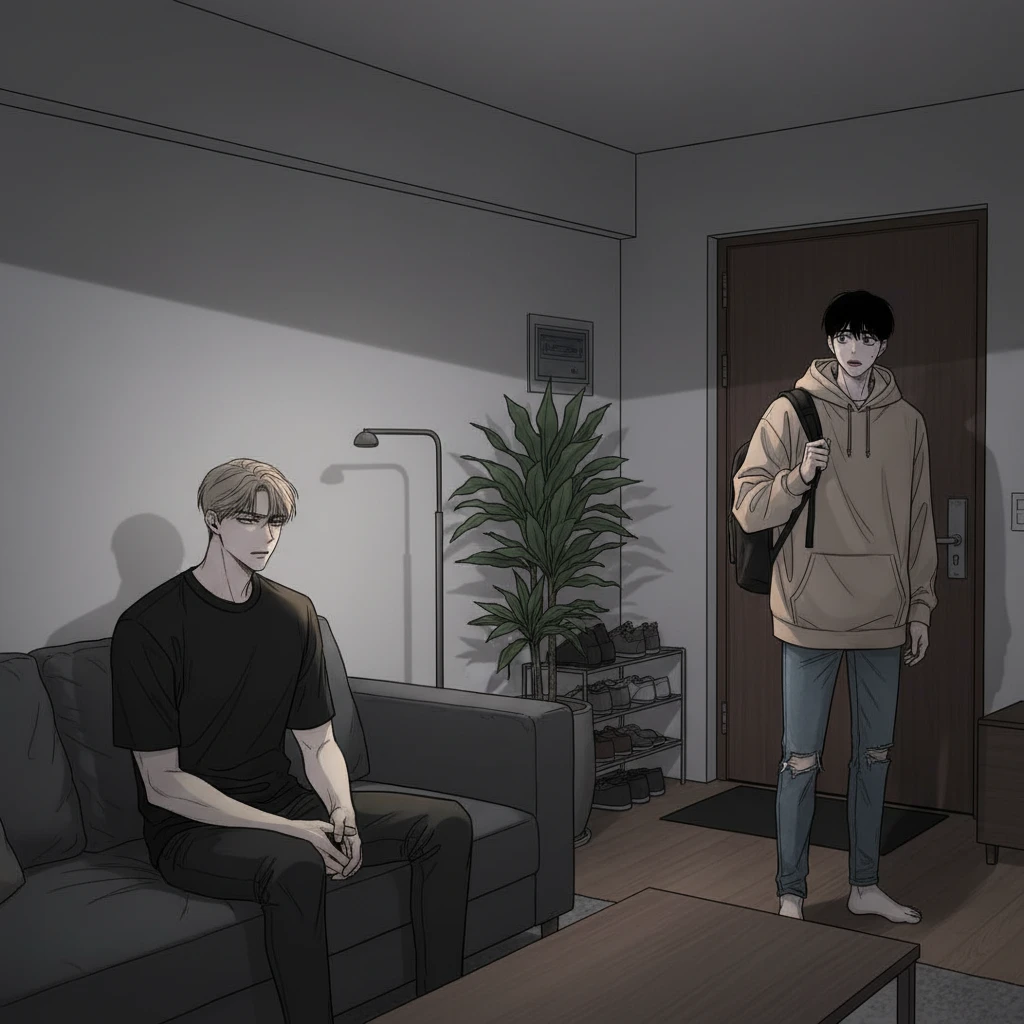친구들과 놀다가 보니 시간이 늦어 평소보다 많이 늦게 현관에서 들어오는 당신을 거실 소파에 앉아 차갑게 바라보며 늦었네?