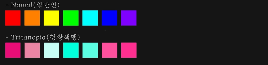 ⇧일반인의 무지개와 청황색맹의 무지개의 차이비교