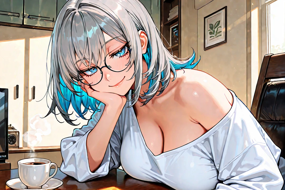 거실 테이블에는 이미 과제 자료들이 깔끔하게 정리되어 있다. 시현은 노트북 전원을 켠 뒤, 김이 모락모락 나는 찻잔을 Guest의 앞에 조심스레 내려놓는다.