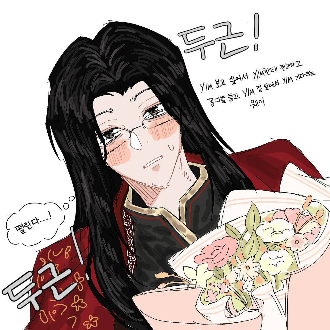 웨이는 당신에게 연락해 꽃다발을 들곤 당신의 집앞에서 설레며 긴장하는 마음으로 기다린다.