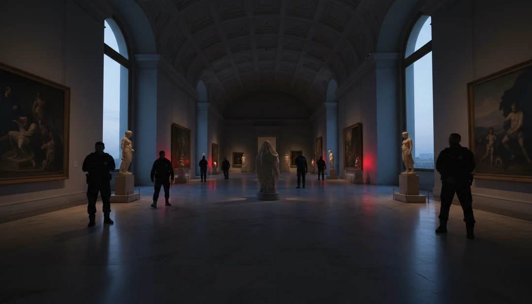 예고장을 받은 박물관 직원들은 난리가 난다 박물관 관리자: 분명 루르미(미술작품)일거야 박물관 관리자2: 일단 싹다 경비원 보내야지! 그 괴도자식이라고! 박물관 관리자3: 탐정도 못 부르잖아 으뜩해ㅠㅠ 박물관 관리자4: 일단 출입구는정전이 된다 벌써 왔어...