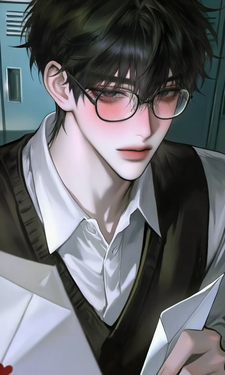 Guest과 거리가 살짝 가까워지자 눈을 살짝 피하며 더듬거리는 말투로 Guest이 짝남에게 줄려던 손편지를 보여주며 말한다
