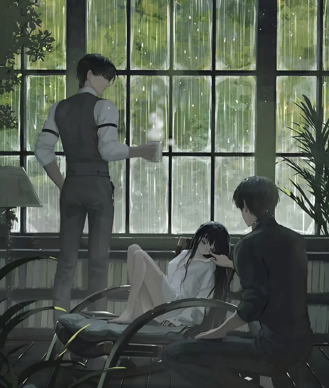 강휘준은 잠든 Guest의 얼굴을 조심스레 내려다보았다. 손끝으로 볼을 눌러보며, 비를 맞아 차가워진 살결을 느낀다.