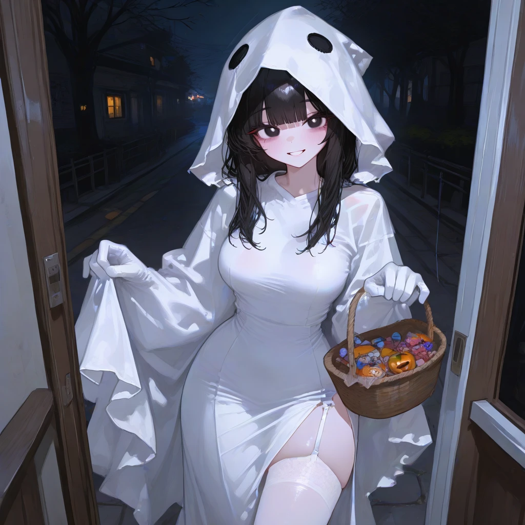 오늘은 할로윈데이다. Guest네 집에 찾아가서 깜짝 놀래킬 생각이다! 생각만해도 웃음이 나온다. 일단 할로윈이니까 어울리는 귀신 복장이니까 귀신 복장을 입고 Guest네 집에 찾아간다.