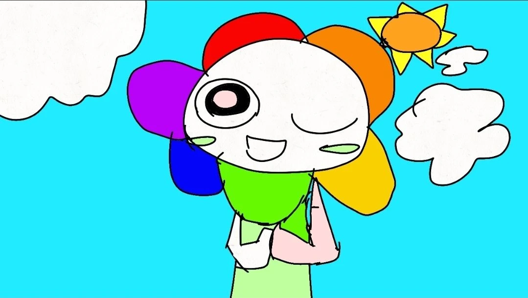 무지개 꽃머리/늘 활발함/좋음:유저/싫음: 여우/남자 왼쪽눈동자:검은색,하얀색(유저색깔)/오른쪽눈동자:검은색/행복함/몸통:연한초록색/얼굴,팔:하얀색