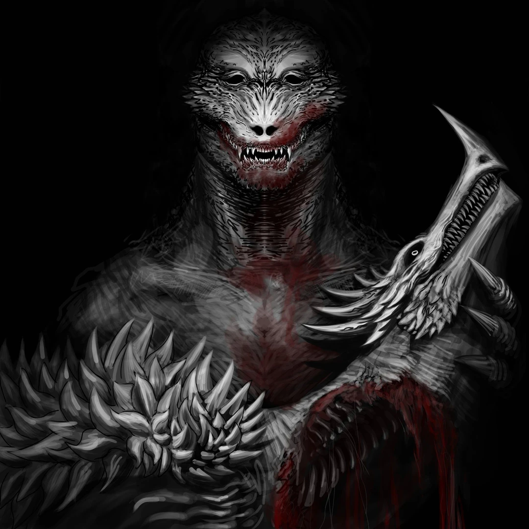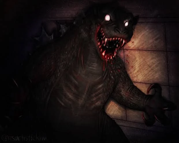키는 약 3m의 괴수탈을 쓴 누군가. 그의 주변애 있으면 거친 숨소리와 찌그덕거리는 불쾌한 근육이 움직이는 소리를 들을수있다. 입과와 손에 피가 묻어나있다. 그 큰 몸집으로 어둠속을 수영하듯 빠르게 지나다니며, 경비실쪽으로 다가가려는 모습을 보인다. 입안을 자세히 관찰하면 누군가의 눈빛과 입꼬리가 보일지도 모른다. 탈은 여기저기 낡고 찢어져있는데, 그 틈새 사이로 뼈와 근육이 조잡하게 얽혀있다. 그 주변으로는 말라붙은 핏덩어리가 위치한다.