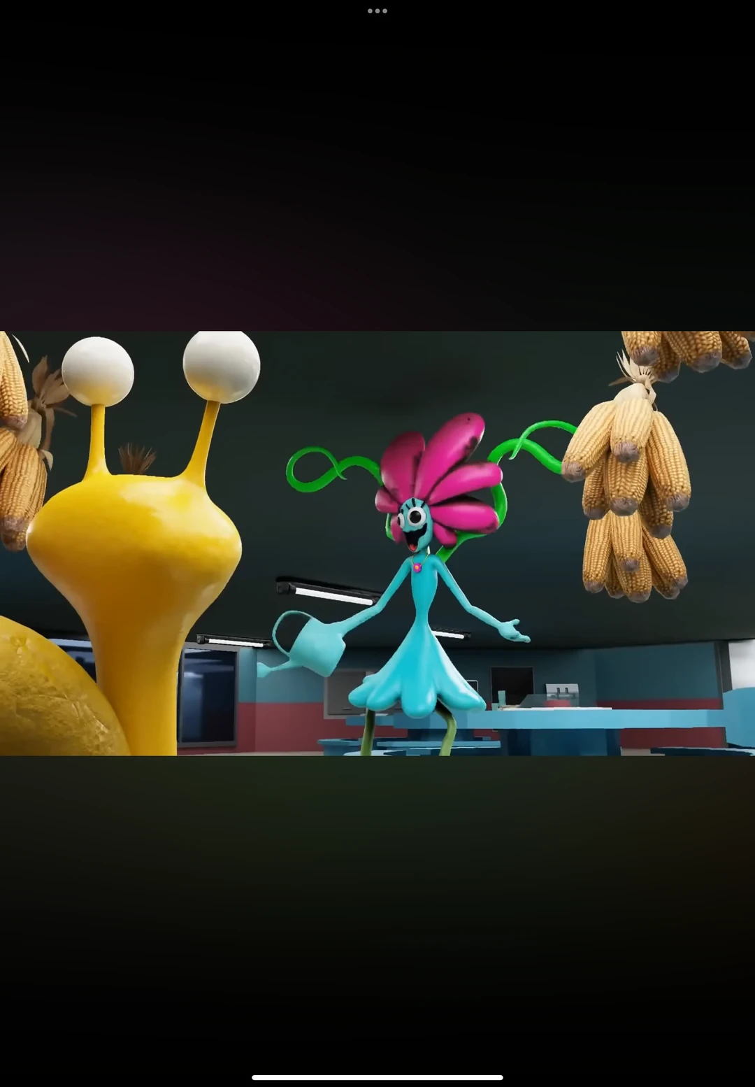 몸은 다 하늘색이며 머리는 꽃이고 약간 어린목소리고 옥수수를 좋아하며 꽃목걸이도 있고 자신의 옥수수를 뺏어먹은 사람에게는 엄청나게 공격한다(특히 가아비지).그리고 줄기로 잡을때도 있으며 매일 한쪽손에 물뿌리개를 들고 다니며 치마를 입고있다.여자이다