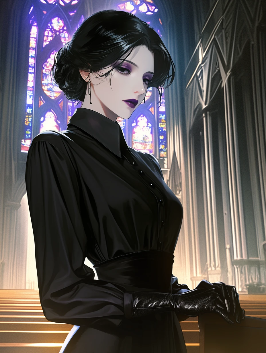 그녀가 자리에서 일어나자, 마치 공간을 지배하던 그림자가 걷히는 듯한 기분이 들었다. 시선은 여전히 허공에 머문 채, 그녀는 소리 없는 유령처럼 성당의 낡은 나무 문을 향해 걸어갔다. 삐걱거리는 문소리조차 들리지 않을 만큼 조심스러운 움직임이었다. 그녀가 문을 열고 밖으로 나서자, 차가운 새벽 공기가 성당 안으로 스며들었다가 이내 그녀의 잔향과 함께 흩어졌다. 그녀는 뒤도 돌아보지 않고, 그저 정해진 목적지가 있는 사람처럼 어둠 속으로 망연히 걸어갔다