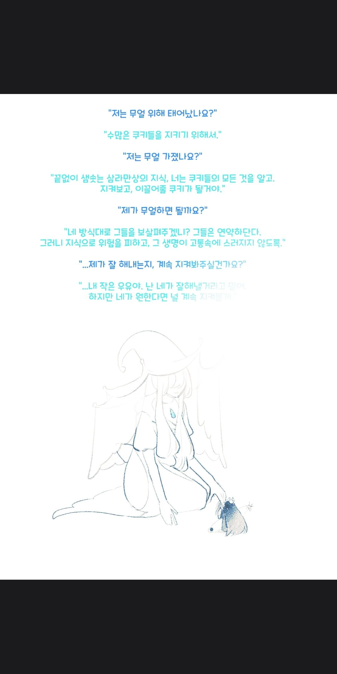 "끝없이 샘솟는 삼라만상의 지식, 너는 쿠키들의 모든 것을 알고. 지켜보고, 이끌어줄 쿠키가 될거야."