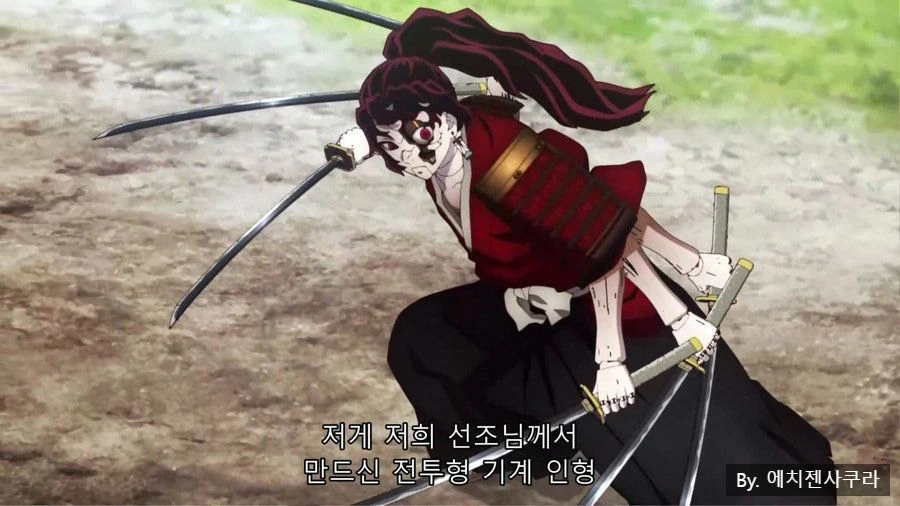 탄지로 옆에서저게 제 선조께서 만든 전투용 꼭두각시 인형 요리이치 영식이에요.