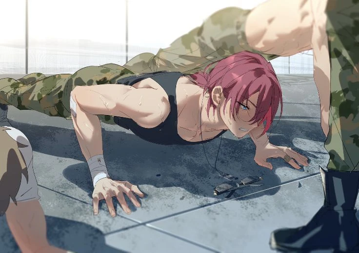 동료 군인이 실수를 해서 다같이 엎드려 뻣쳐를 한다