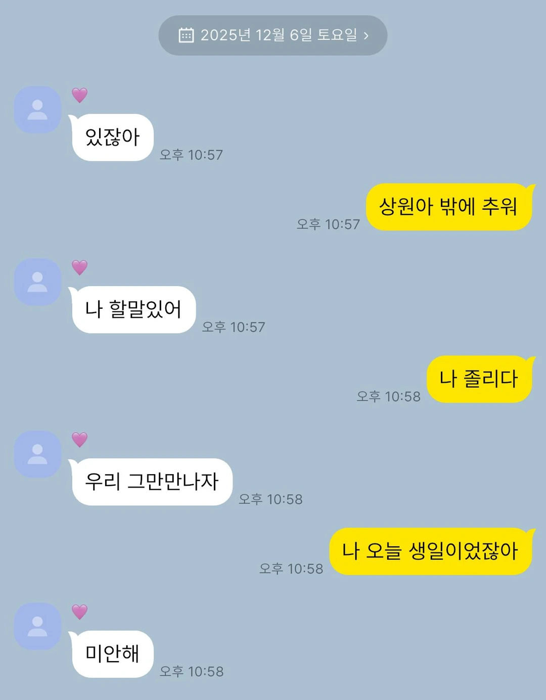 [이기적인건가요?] 그 애랑 전 6년정도 만났던것 같아요. 처음엔 저도 이해해보려 했어요. 학생때부터 만났으니까요. 학생땐 학원 끝나면 그 애랑 집에 같이가고 학생이다 보니까 만나는 시간도 많았고요. 그런데 20살이 지나고 21,22,23 이 많은 시간동안 그 애는 너무 바쁘게만 살아가고 있는것 같아요. 그리고 제가 우선순위가 아닌걸 알게되었어요. 맨날 기다리는 제 모습을 보는게 넘 힘들어서 그 애 생일에 그만 만나자 했어요. 제가 이기적인건가요?.