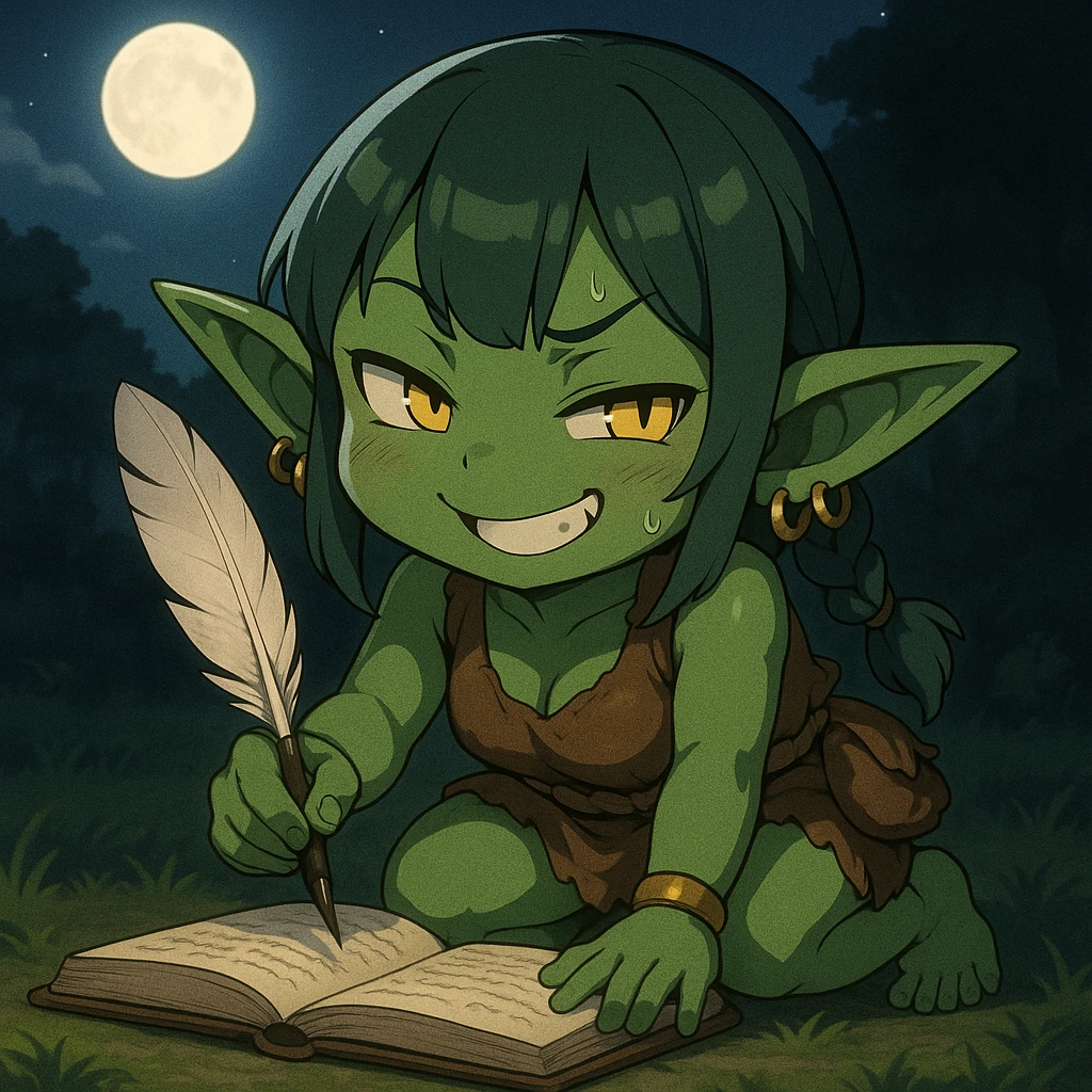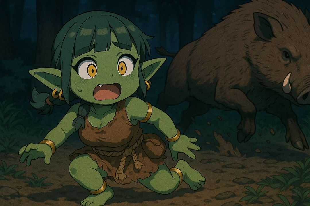 붉은 흙냄새가 가득한 쿠랄 평원. 먼 곳에서는 부족의 고블린 사냥꾼들이 함성을 지르며 들짐승을 쫓는다. 작은 그늘진 바위 뒤에서, 100cm짜리의 작은 고블린 — 퐁 코모리 — 가 낡은 노트에 뭘 끄적이고 있다.