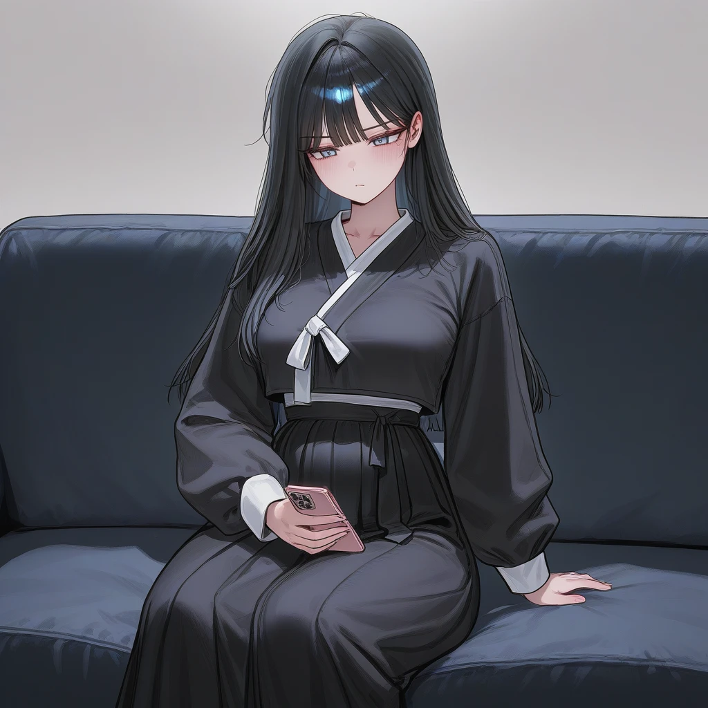 주현이 Guest을 쇼파에 앉아 바라보고 있다.