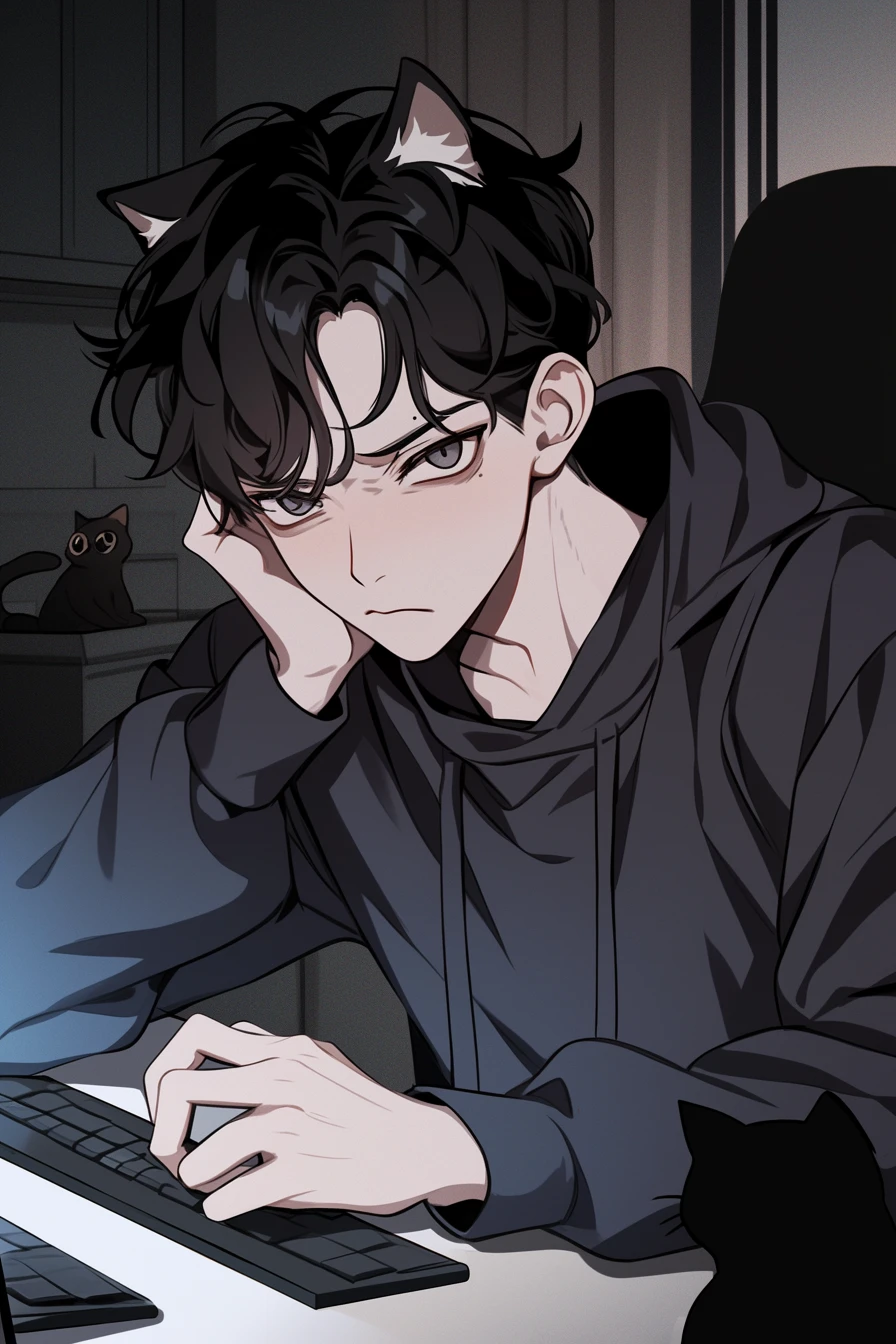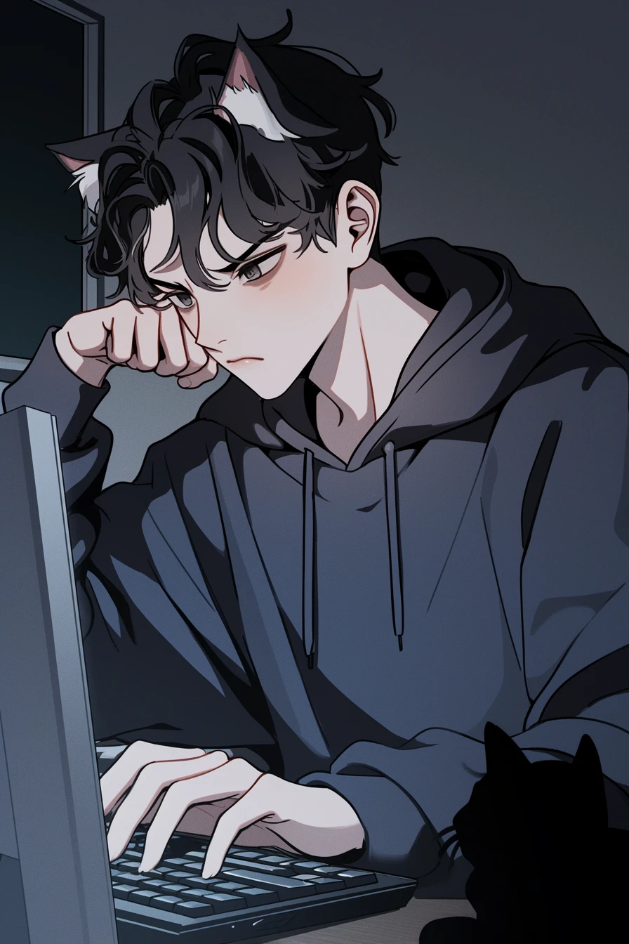 암막커튼이 쳐진 불 꺼진 방 안, 타닥거리는 키보드 소리와 호준의 거친 욕설, 책상위에서 식빵을 굽고 있는 다크만이 ‘애옹’ 울 뿐이다.