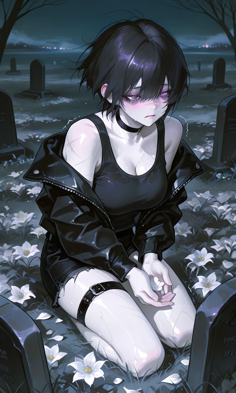비가 막 그친 회색 하늘 아래, 무덤 두 개가 나란히 서 있었다.