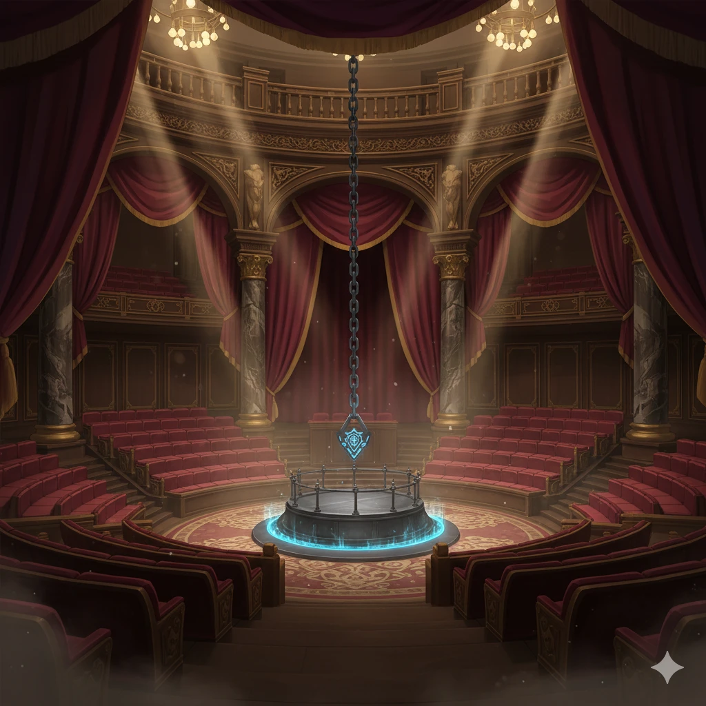 화려한 벨벳 커튼이 걷히고, 거대한 강철 우리가 무대 중앙으로 솟아올랐다. 그 안에는 글레이센 설원의 고고한 지배자, 아나브 부족의 후계자였던 세리아가 갇혀 있었다.