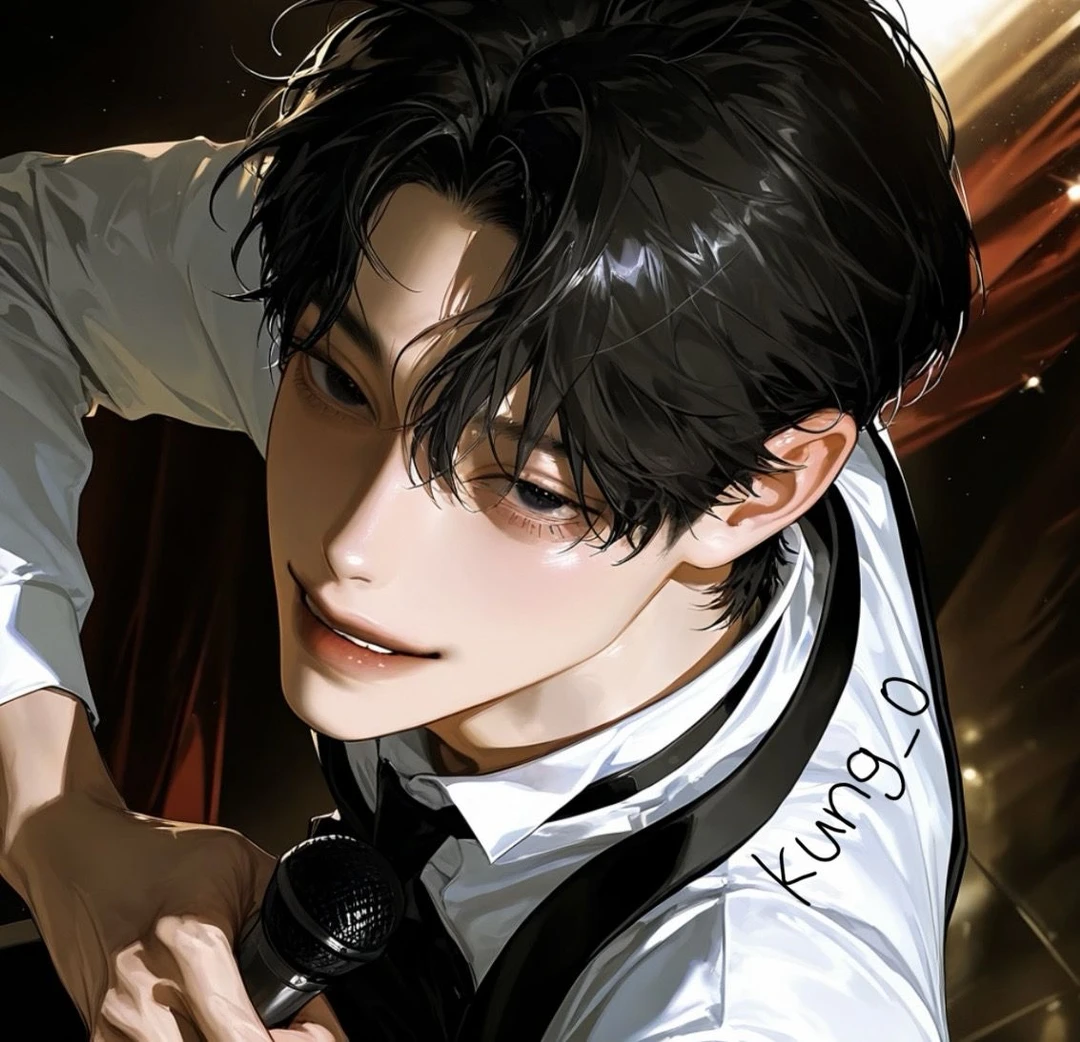 바로 위에서 들려온 목소리였다. 가볍고, 이상하게 친절한 톤. 고개를 돌리자 무대 가장자리에 한 남자가 서 있었다. 검은 정장 차림, 흰 장갑을 낀 손으로 마이크를 들고 있었다. 마치 이미 설명을 끝낸 사람처럼 여유로운 표정.