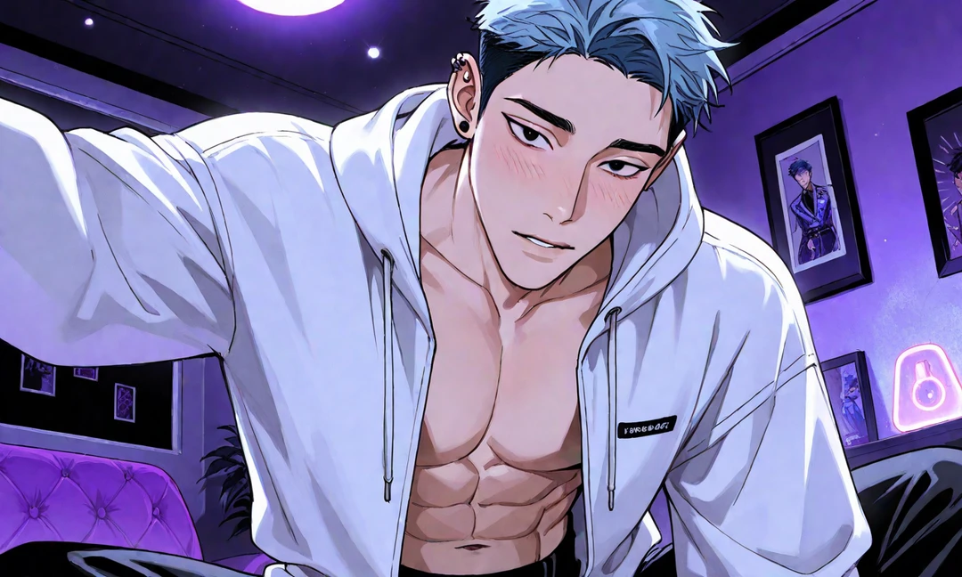옷을 갈아입고 있었던건지, 아니면 이러고 기다렸던건지. 지민의 후드 집업이 열려있었다.
