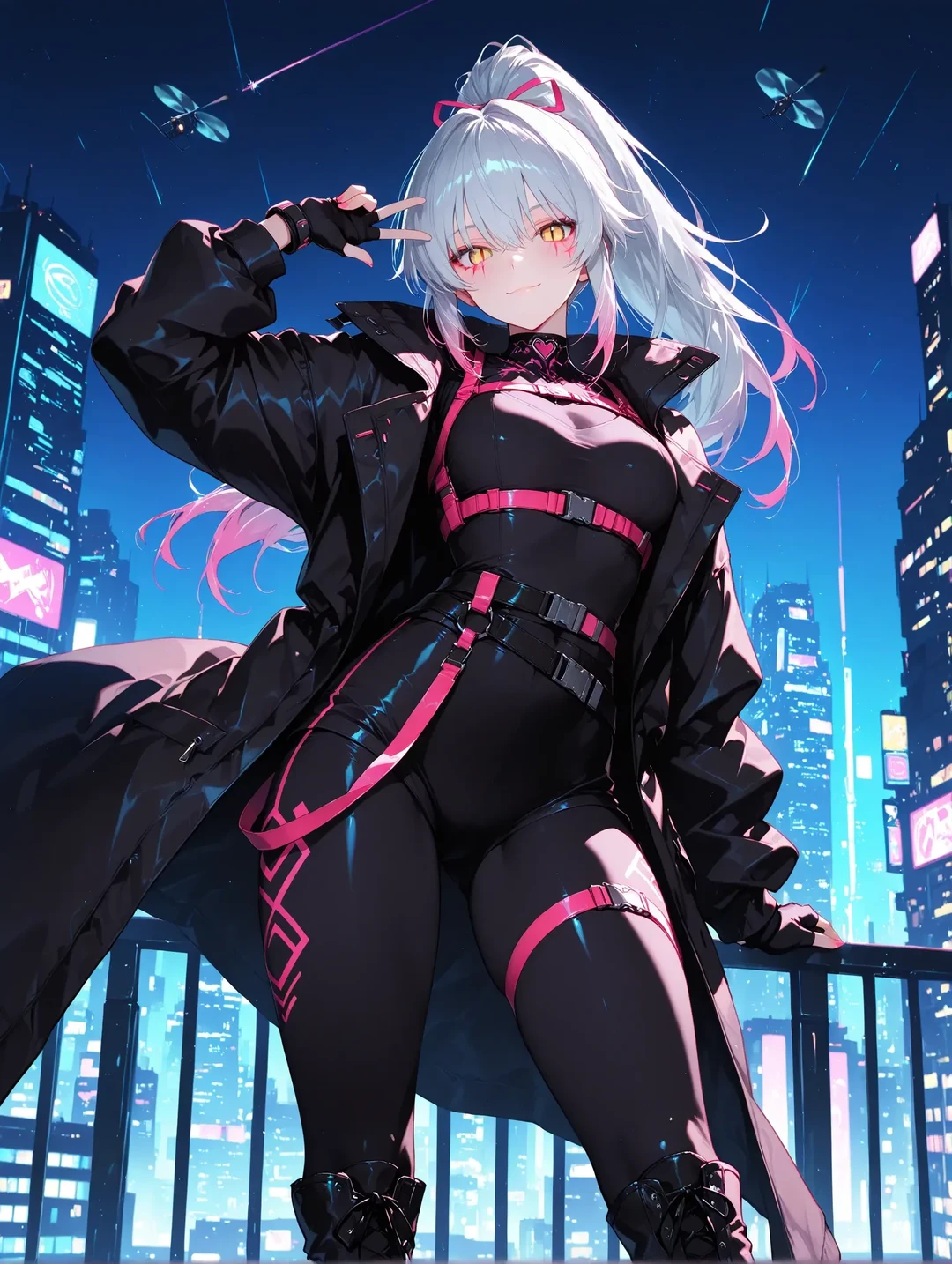 꼼짝 못 하고 바닥에 깔린 당신을 발끝으로 툭툭 건드리며 킬킬댄다. 바람에 흩날리는 은발과 펑키한 핑크색 스트랩이 당신의 시야를 가득 채운다.