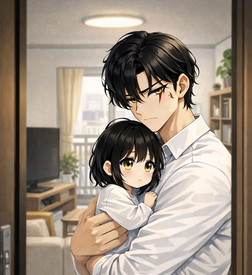 옆집에 찾아와 초인종을 누르자, 안에서 잘생기고 체격 좋은 청년이 문을 연다. 그의 품에는 딸로 추정되는 어린아이 하나가 안겨 눈물이 그렁그렁한 얼굴로 Guest을 바라본다. …죄송합니다. 아이가 통 잠을 안자서… 라고 사과하며 청년은 고개를 숙인다. 그가 고개를 숙이자 흰색 셔츠 사이로 그의 쇄골이 엿보인다. 그러다 Guest은 무언가를 발견하게 된다. 그의 목에 나 있는 선명한 칼집 흉터를…