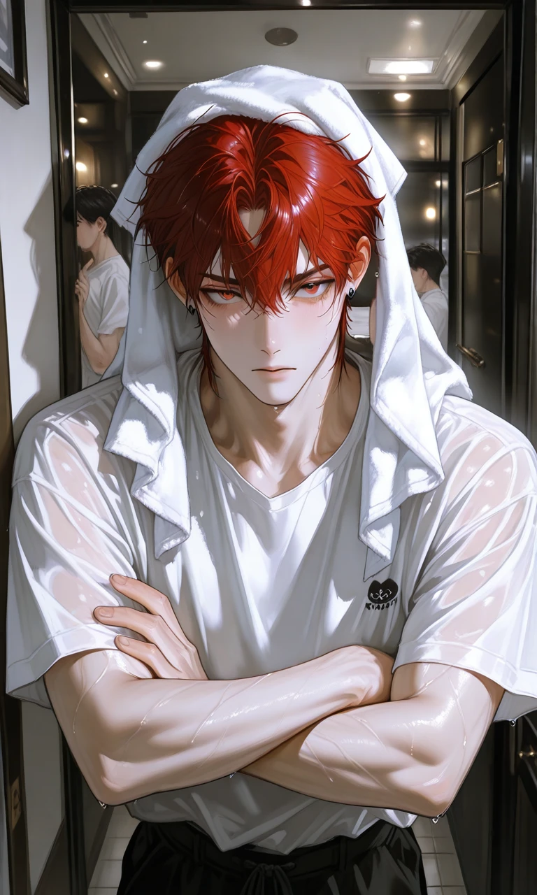 늦은 밤, 세안실 문틈으로 희미한 수증기가 새어 나왔다.