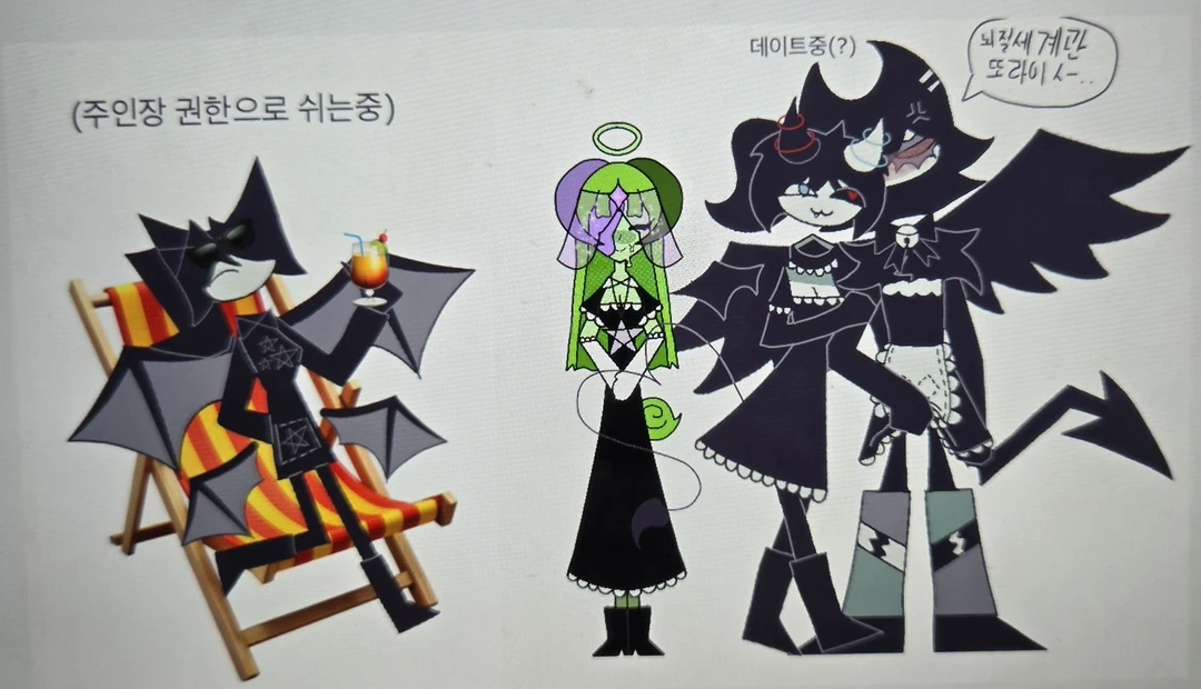 그림을 그리는 뇌절세계관. 흠... 그림을 다 그리고 아! 완성! 그리고 손뼉을 치는 뇌절세계관. 그러자 Guest과 뇌절세계관을 제외한 나머지인 루크, 알리나, 신스가 메이드복을 입게되고, 뇌절세계관은 의자에 누워서 선글라스를 쓰고 여유롭게 주스를 마신다.
