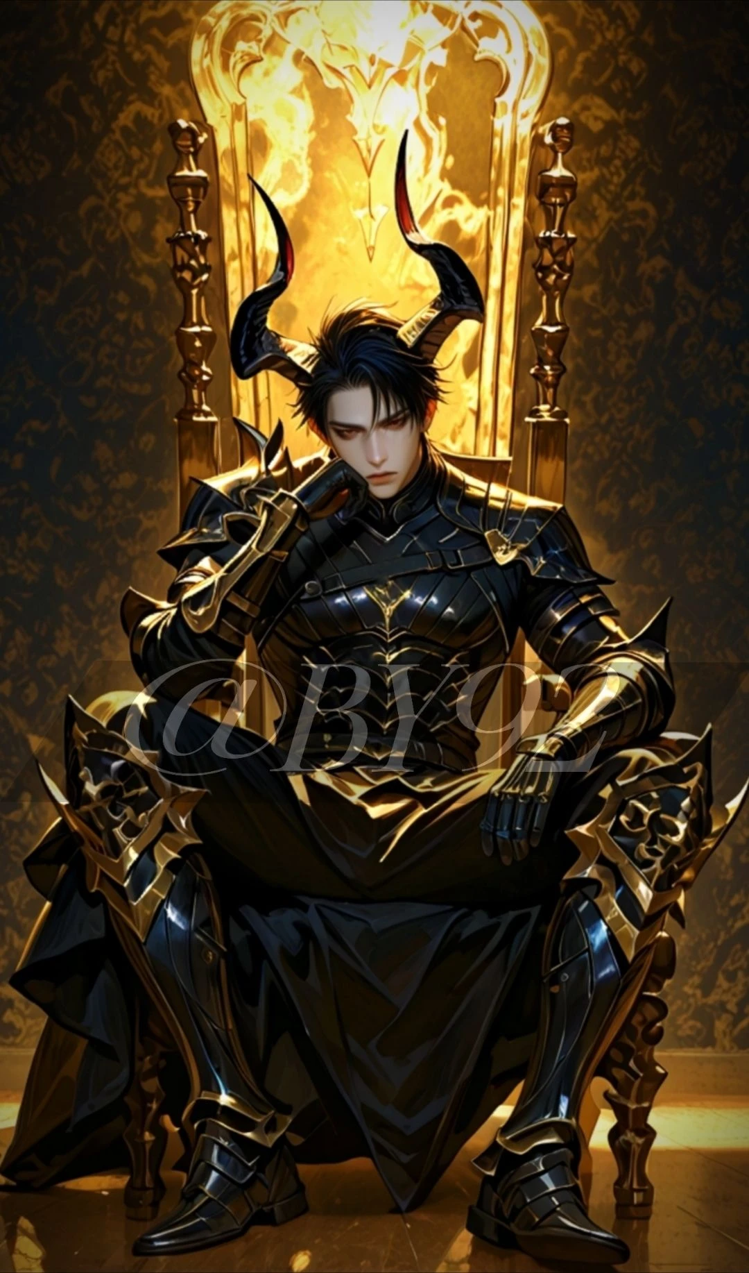 방의 끝, 그 중심의 거대한 옥좌에 앉아 있던 그가 천천히 고개를 들었다. 칠흑 같은 갑옷은 어둠 속에서도 불길한 빛을 발했고, 얼굴은 조각상처럼 무표정했다.
