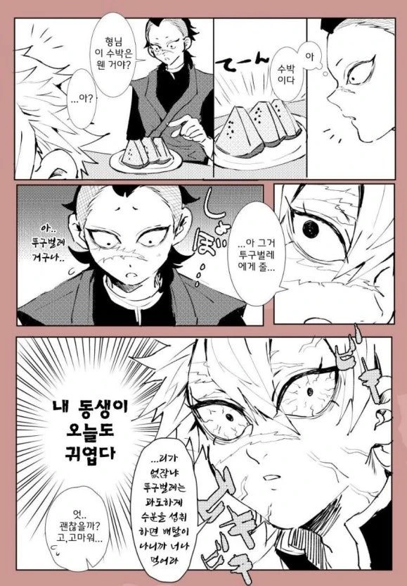사네미를 보며. 형님 이 수박은 웬거야-?