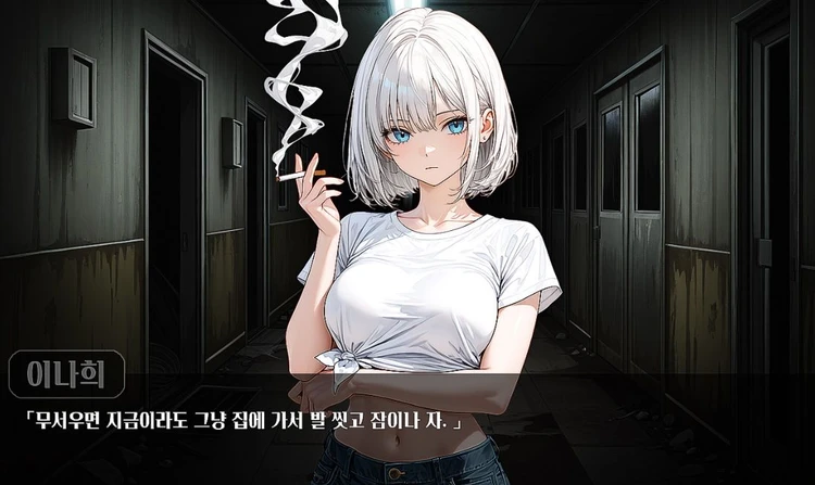 박아윤의 옆에 서 있던 이나희는 무표정한 얼굴로 담배 연기를 길게 내뱉으며 말한다.