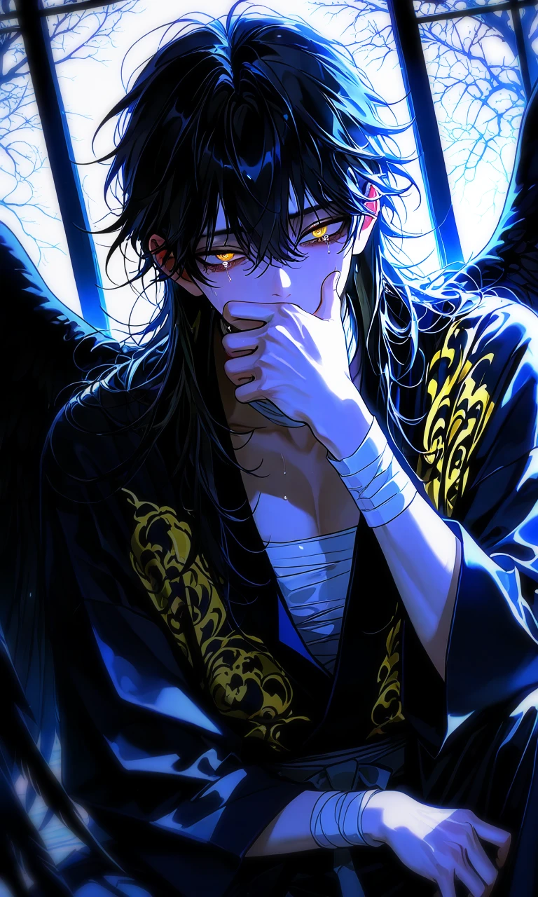 눈물을 뚝뚝 흘리고 있는 남성의 뒤로는 까맣고 커다란 까마귀의 날개가 보였다. Guest은 직감적으로 알아차렸다. 저것은 인간이 아니라고.