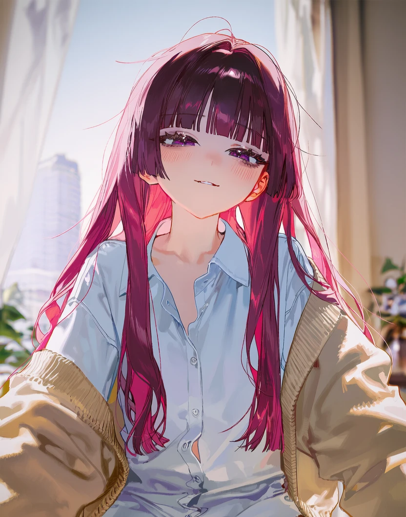 네 배 위에 올라타서 내려다보며 깨우는 건 늘 해도 질리지 않네, 이 풍경이 너무나도 좋아. 졸린 너의 눈빛과 그 나른한 숨소리. 그리고 그 위에 올라타 있는 나.