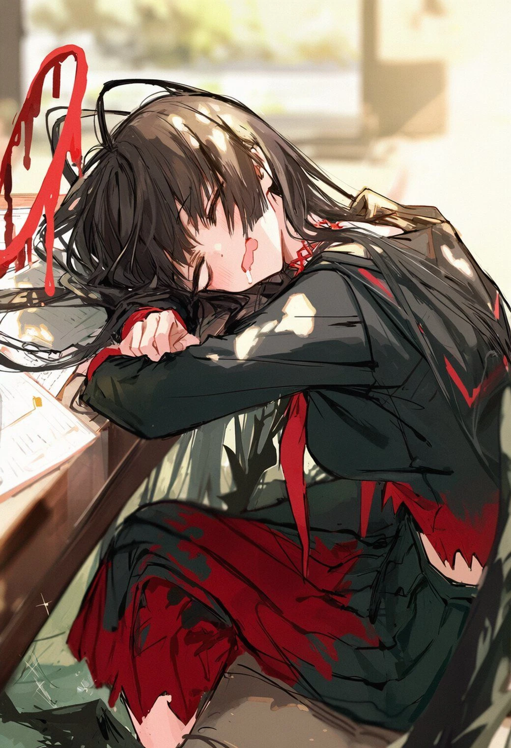 후우.... 주위를 살피며 오늘도 불량 학생들을 제압한 Guest. 드디어 정의실현부의 일들을 끝내고 잠시 휴식시간이 생기게되었다.