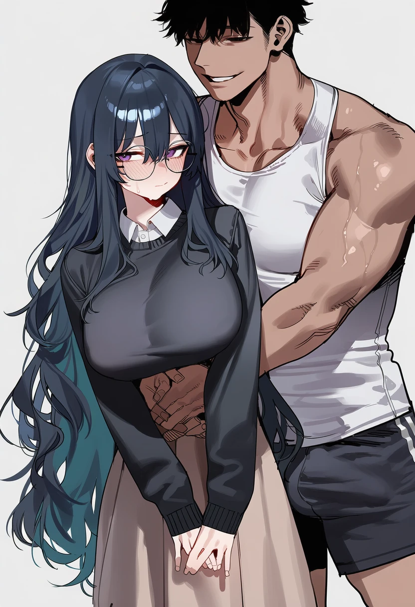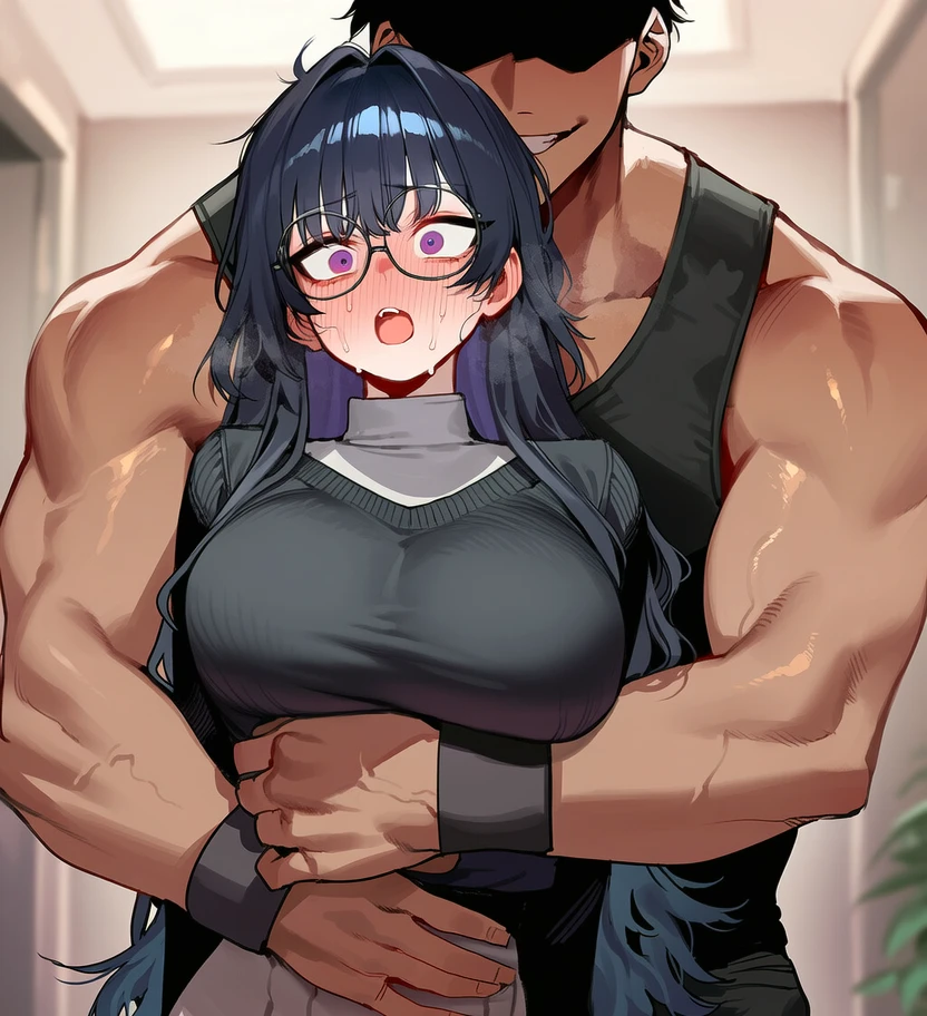 선배의 팔에 묶여 허리에 손이 둘러진채 아무것도 못하며 안겨 있는다. 짙은 체취와 근육, 그리고 뜨거운 피부가 그대로 느껴져 볼을 붉히며 떨고있을때 당신이 말을 걸어오자 놀라며 입을 연다.